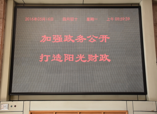 厅办公楼一楼电子大屏幕滚动播出政务公开宣传标语