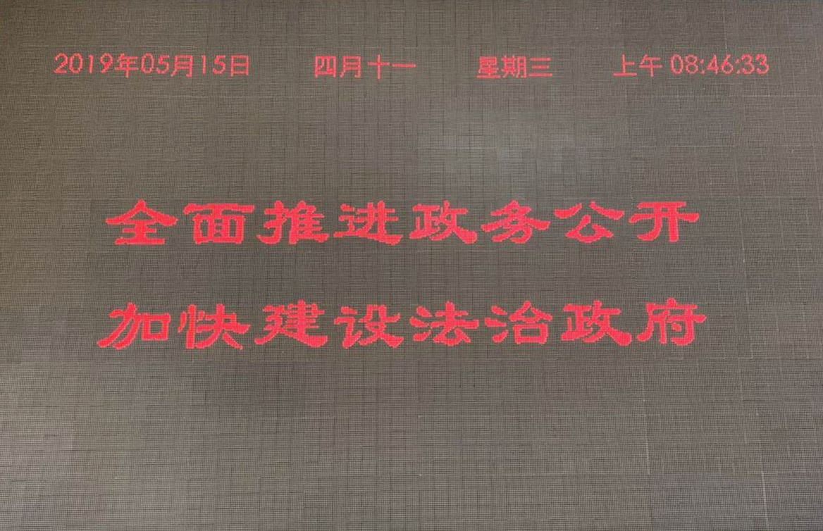 厅办公楼一楼电子大屏幕滚动播出宣传标语