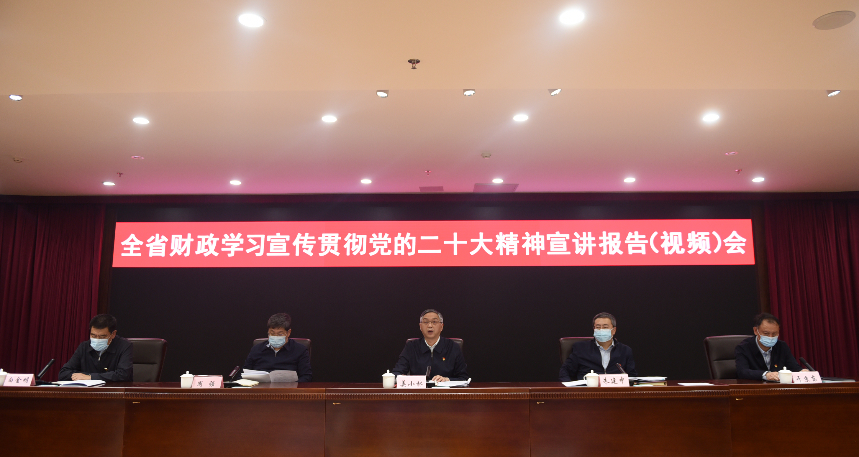 11月17日,辽宁省财政厅召开全省财政部门学习宣传贯彻党的二十大精神宣讲报告会。党的二十大代表、辽宁省财政厅党组书记、厅长姜小林作宣讲报告。会议采用视频形式召开,省、市、县(市、区)财政党员干部在各会场参加了报告会。